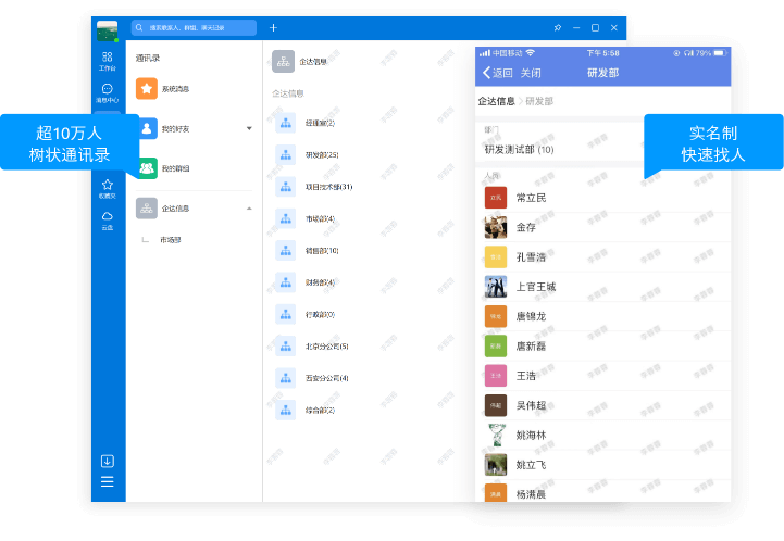 无论何时何地,都能清晰地通过组织架构快速找人。