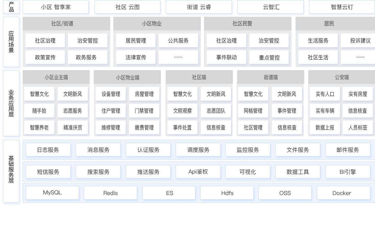 为居民提供微信小程序入口,为街道、社区各级部门办公人员提供移动办公APP入口、智慧政务办公平台。